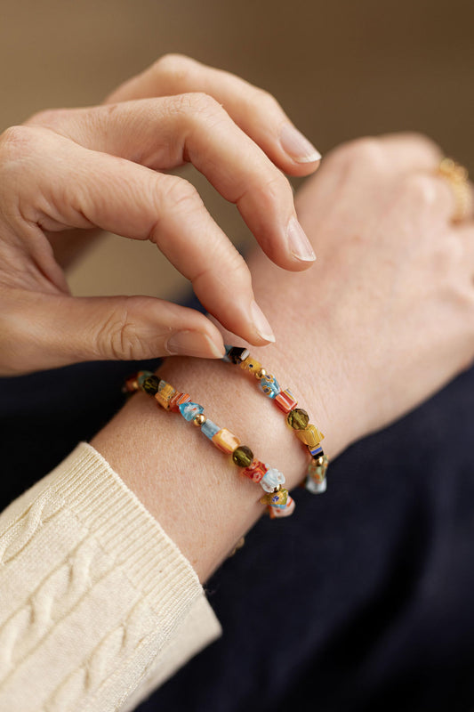 Bracelet réglable perles de verre millefiori - Orsola