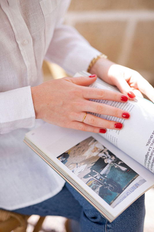 Fines et délicates, les bagues Sissi100fils sont faites pour être portées au quotidien grâce à leur finition en plaqué or 18 carats. Réglables, elles s’ajustent à la taille de vos doigts et peuvent s’accumuler pour un rendu encore plus tendance.