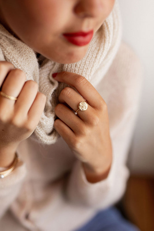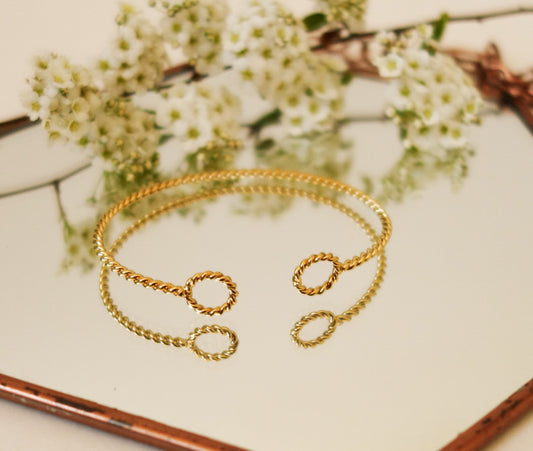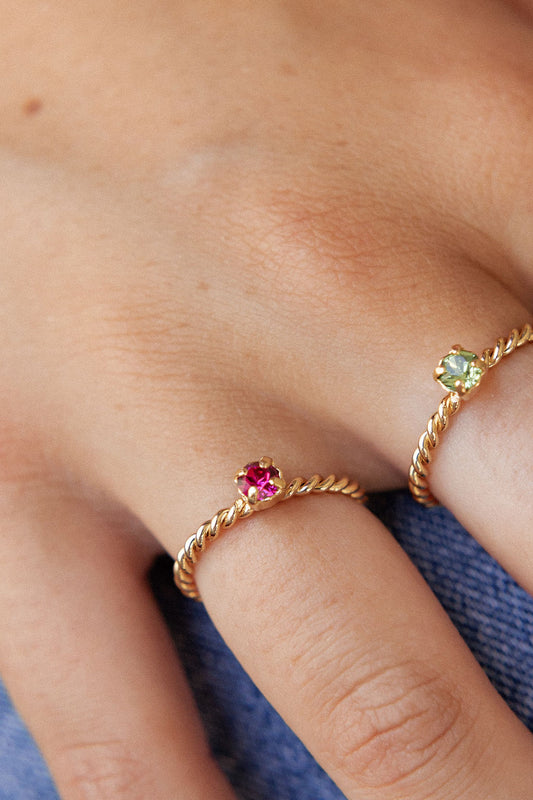 Bague fine réglable cristal plaqué or - Claudia torsadée