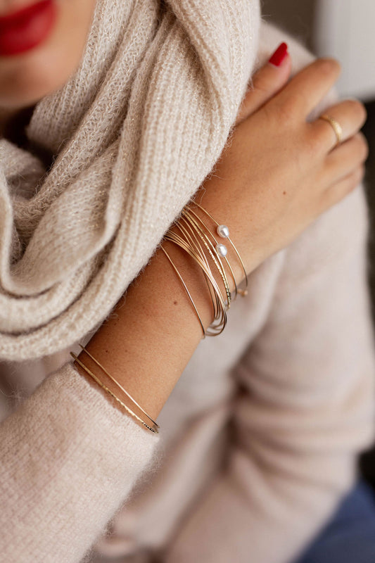 Minimalistes et élégants, les bracelets joncs habillent délicatement le poignet et accessoirisent vos tenues. Ils s’enfilent et s’accumulent à l’infini pour un style encore plus tendance.