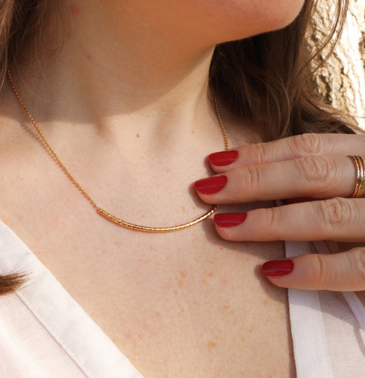 Collier ras de cou doré à l'or fin chaîne graphique - Kori
