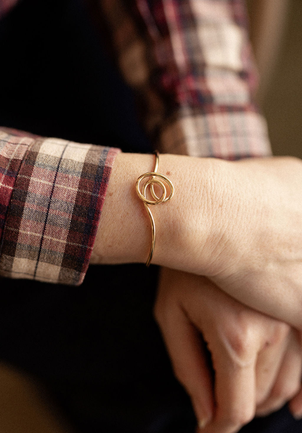 Le jonc Dali est fabriqué à la main en laiton doré à l'or fin fin 24 carats.